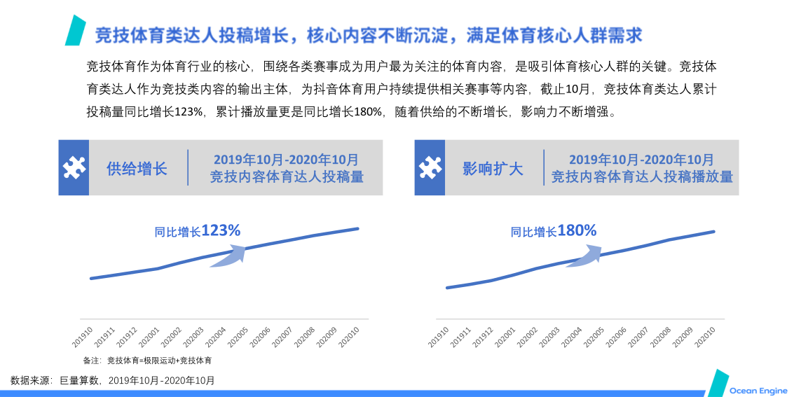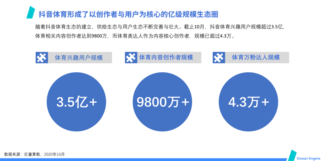 2020年是特殊的一年,在客观环境的影响下,线下赛事和活动被迫暂停,体育行业面临挑战,急于转型寻求发展。同时,短视频的活跃为体育行业带来新的机遇,线上体育内容获得了更广泛的用户关注。为了追踪体育行业在互联网的发展趋势,巨量算数和抖音联合出品《2020年抖音体育生态白皮书》,从抖音庞大的用户群体、海量的体育内容中,剖析体育行业的数字化未来。