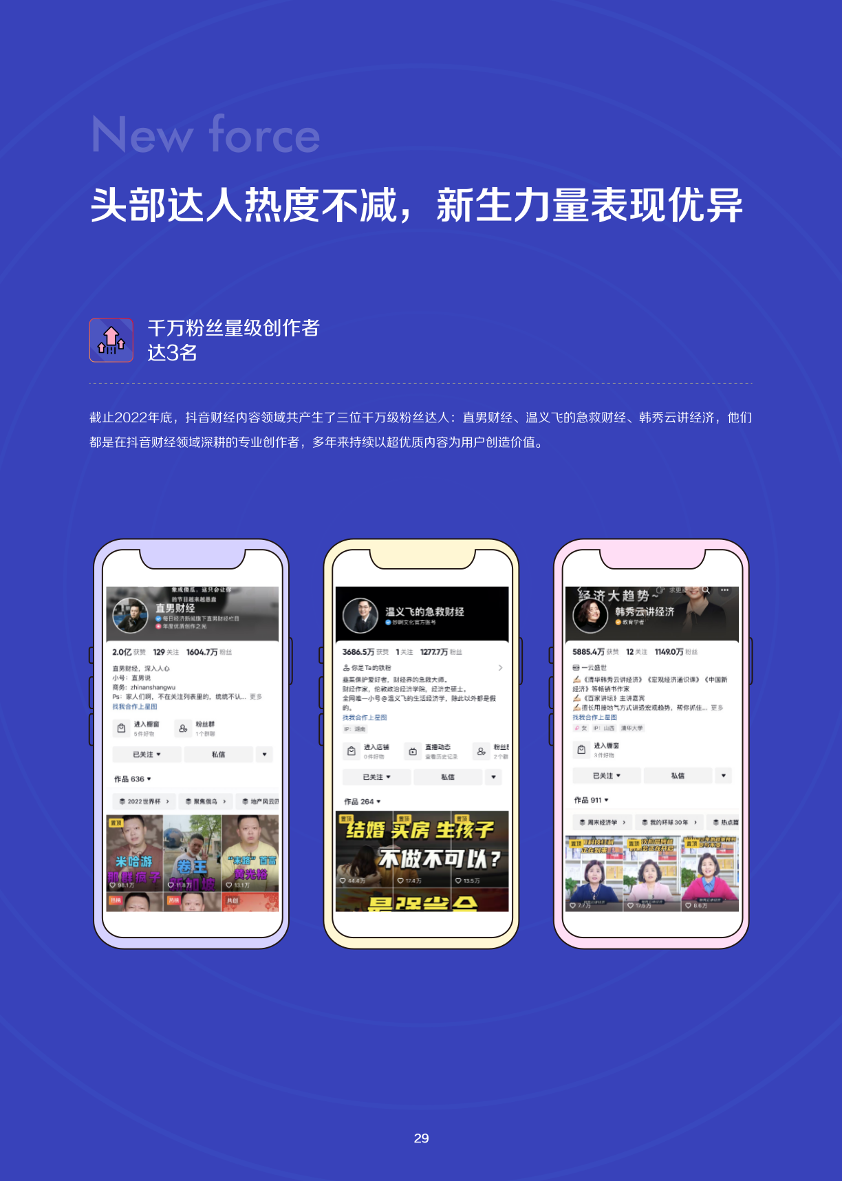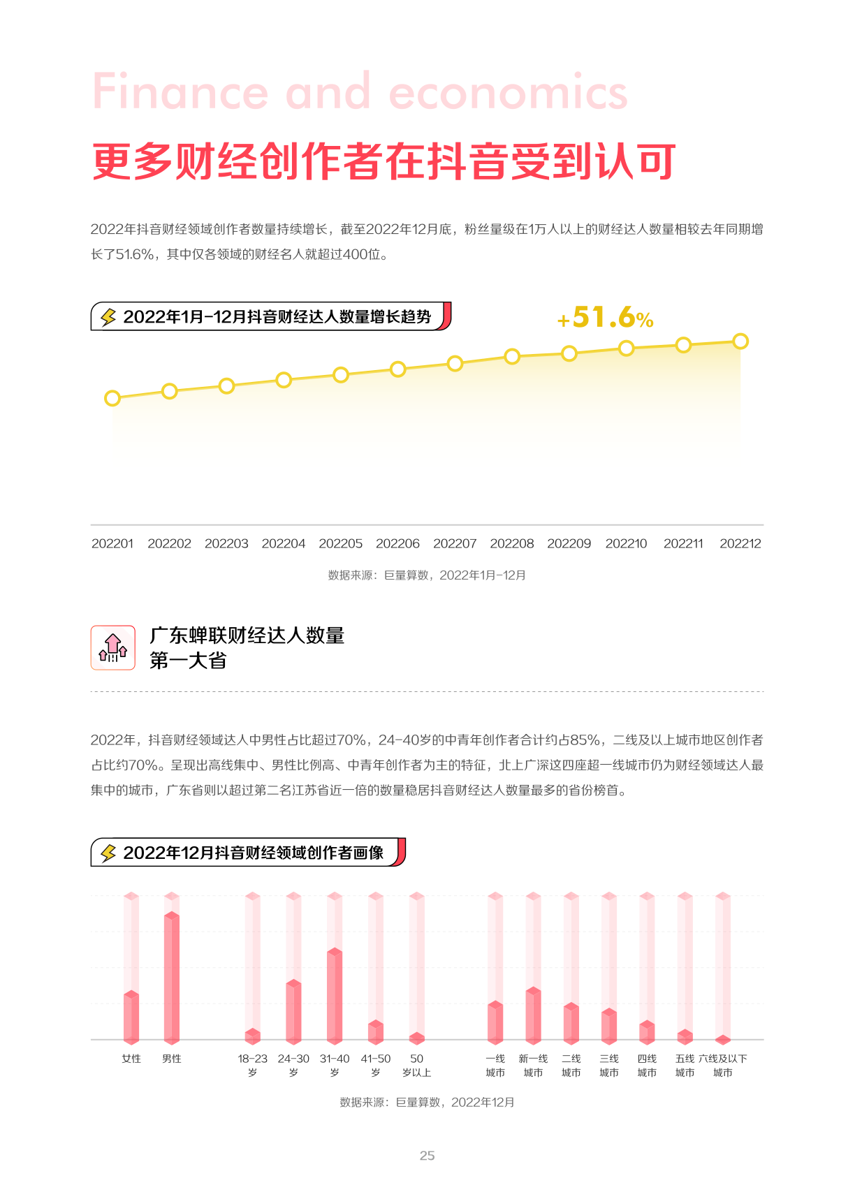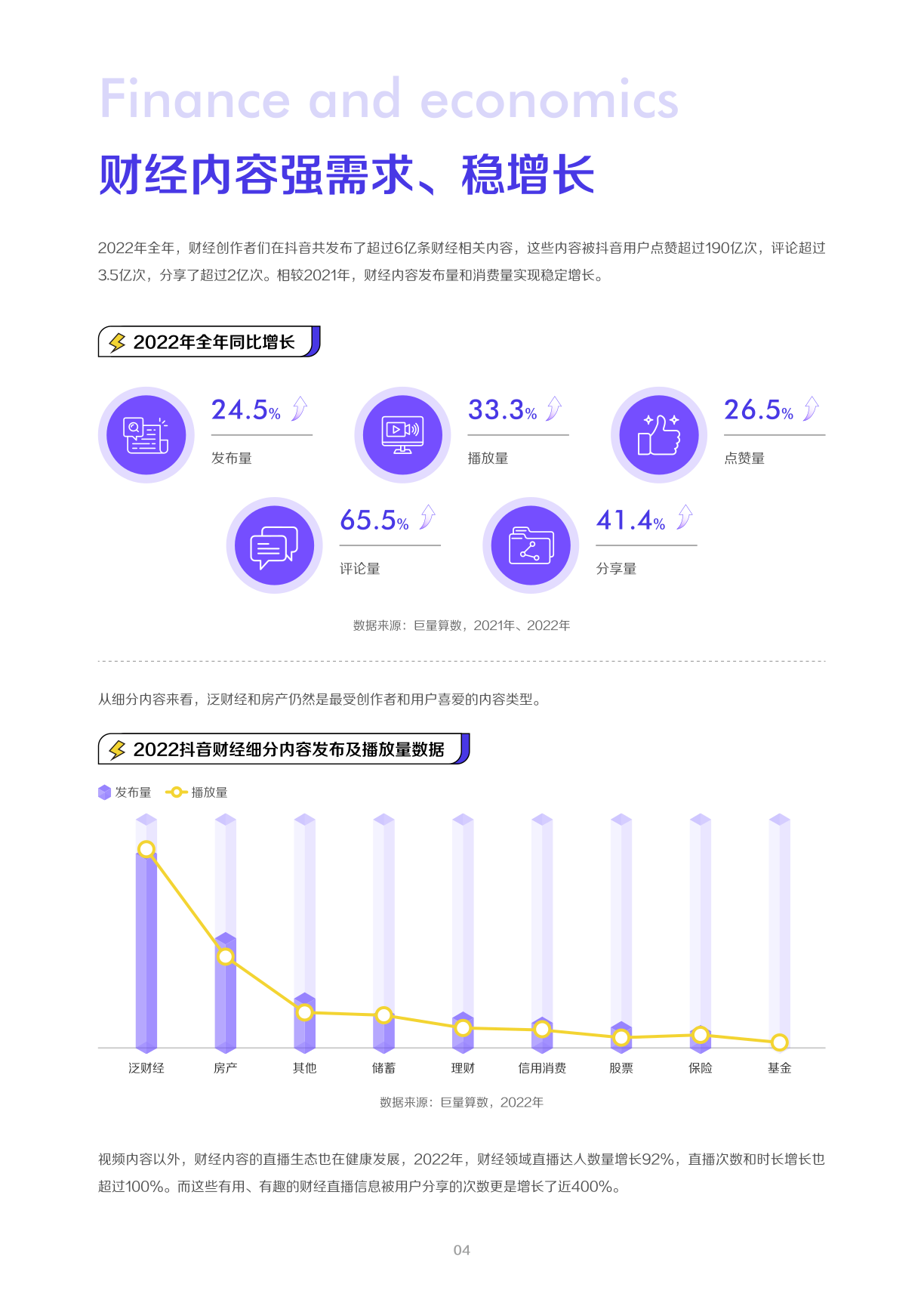 2022抖音财经内容生态报告总结了过去一年财经用户和创作者的变化、情绪变化、需求变化,也对2022年抖音财经内容生态进行了完整盘点。
