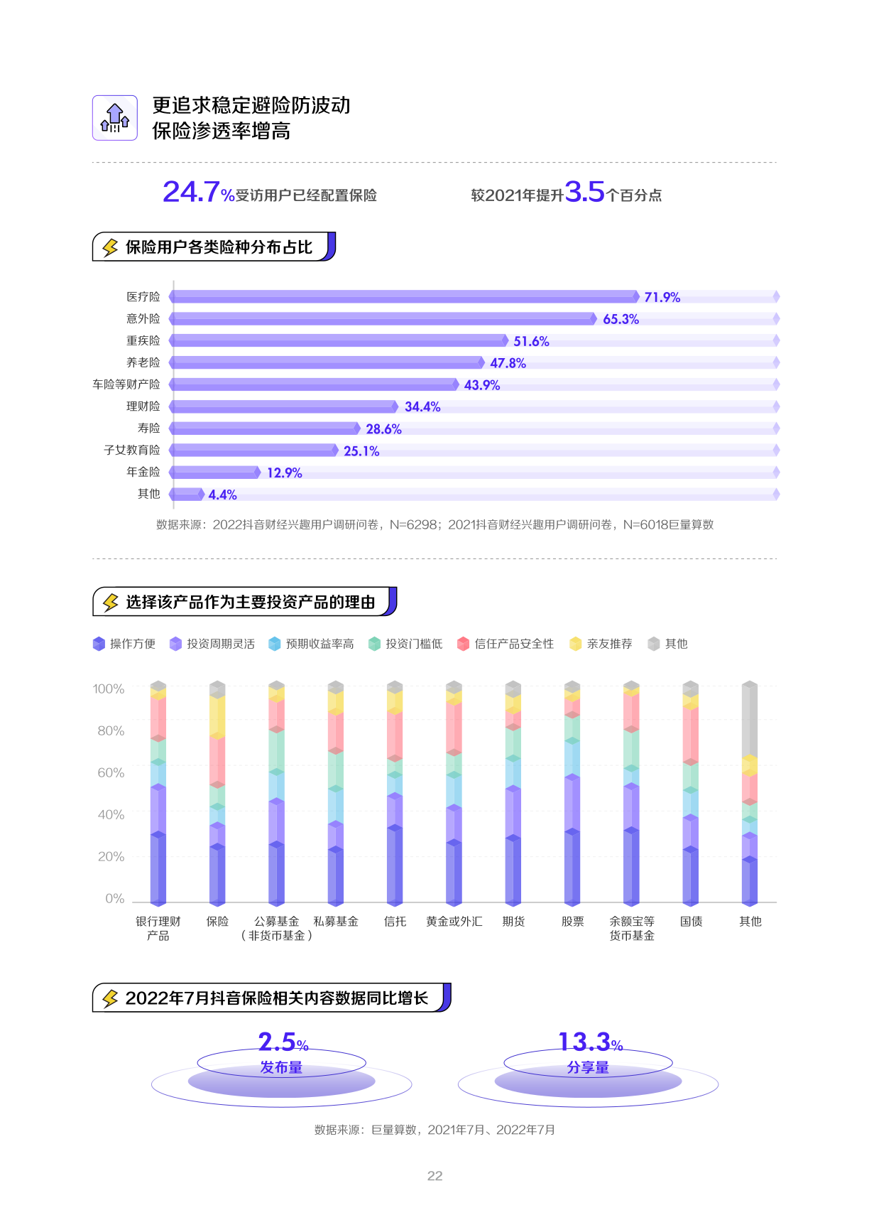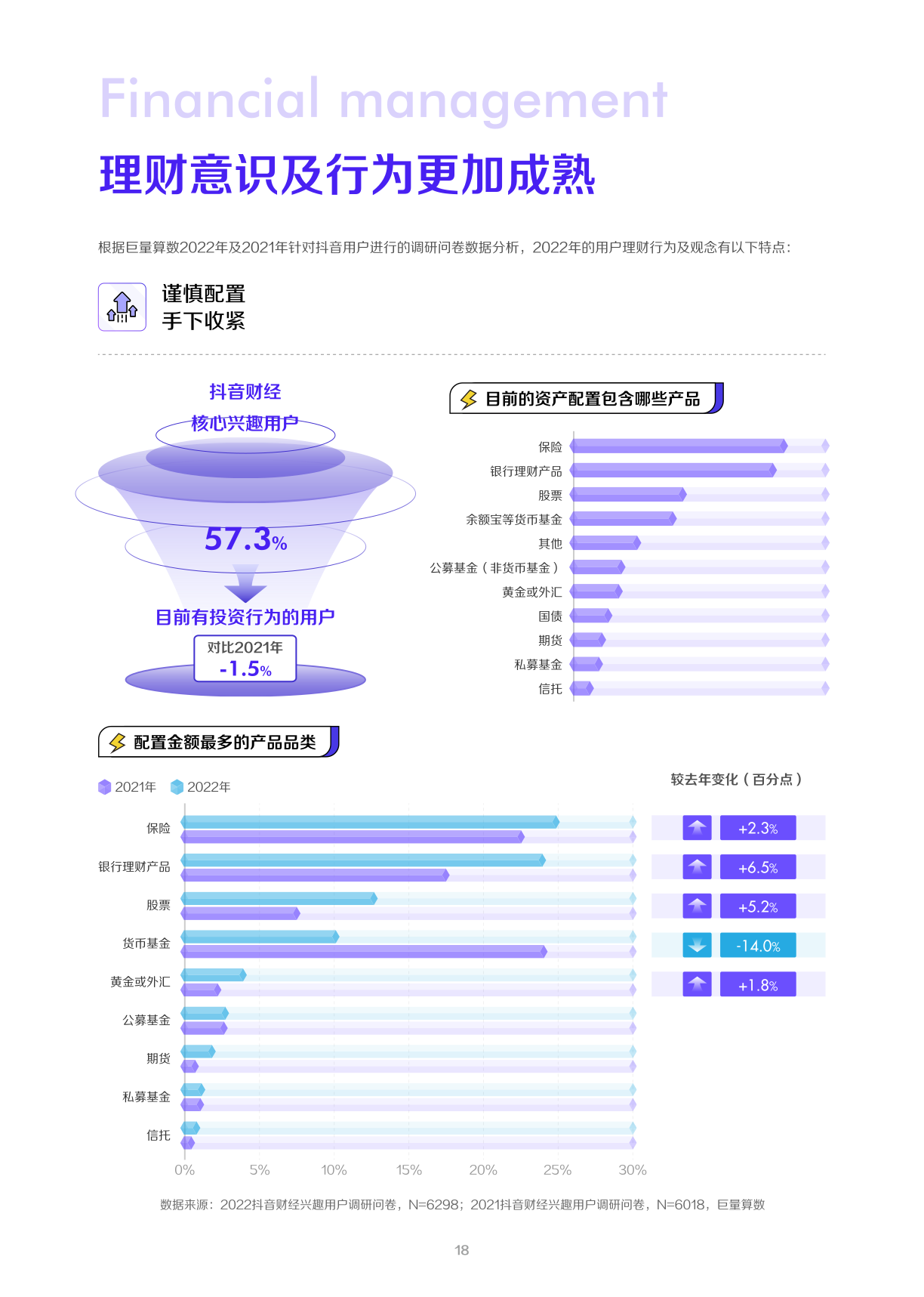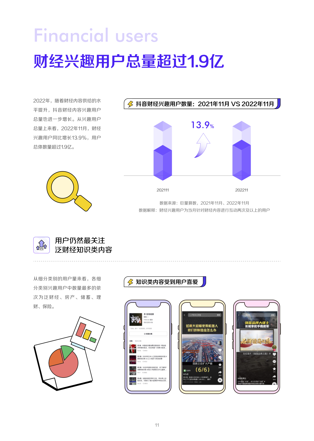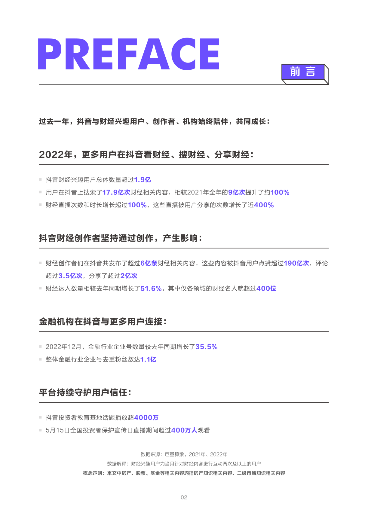 2022抖音财经内容生态报告总结了过去一年财经用户和创作者的变化、情绪变化、需求变化,也对2022年抖音财经内容生态进行了完整盘点。